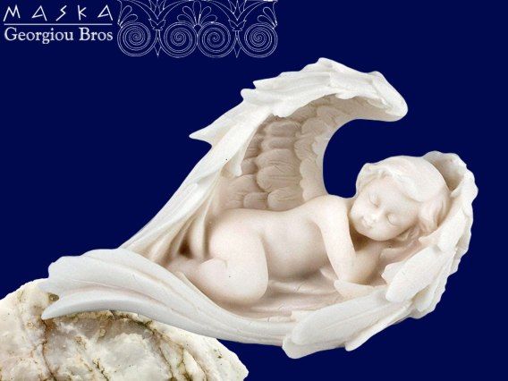 Aniołek śpiący w skrzydłach - alabaster grecki