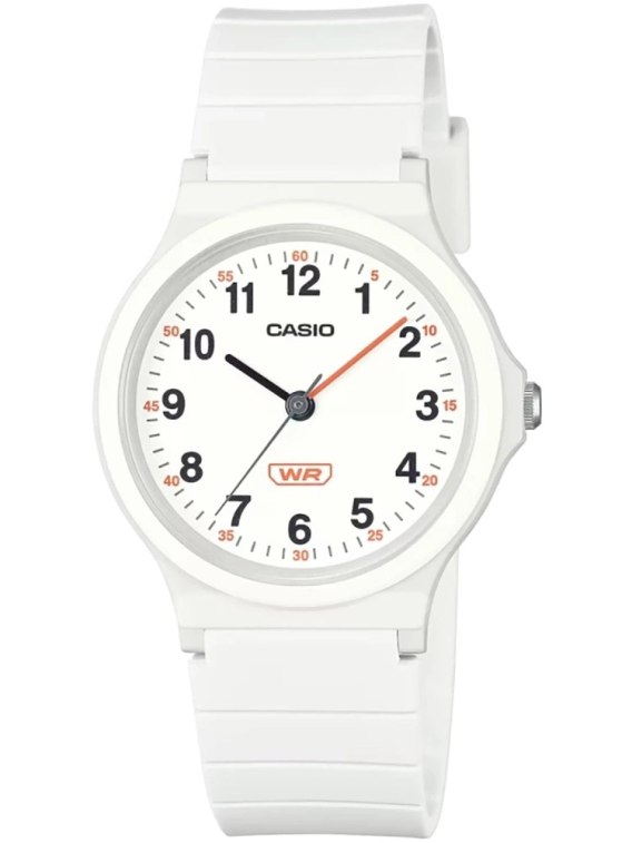Zegarek damski Casio LQ-24B-7BDF to subtelna elegancja, która doskonale wpisuje się w nowoczesny styl. Jego minimalistyczny design przyciąga uwagę swoją prostotą, a jednocześnie nie pozbawia go klasycznej kobiecej wytworności. Zegarek wyróżnia się czytelną tarczą w delikatnym odcieniu bieli, która zyskuje wyjątkowy charakter dzięki kontrastującym wskazówkom. Świeża, ale zarazem uniwersalna stylistyka sprawia, że model ten pasuje zarówno do codziennych, jak i bardziej sportowych stylizacji.