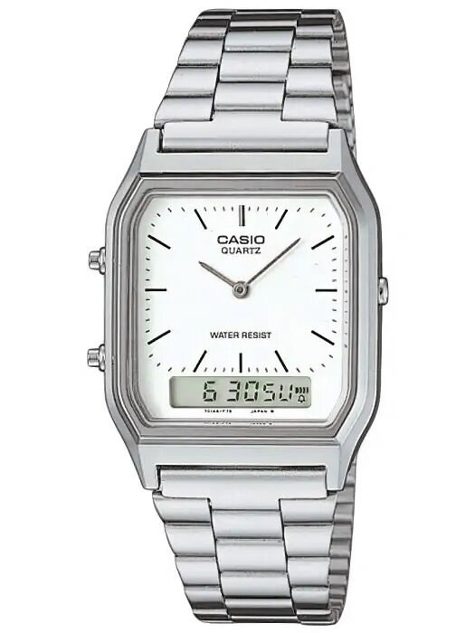 Model AQ-230A-7DMQ oferuje szereg przydatnych funkcji, w tym datownik, stoper, alarm oraz podświetlenie, które ułatwia odczyt czasu w warunkach słabego oświetlenia. Zegarek jest wodoszczelny do 30M (30 ATM), co oznacza, że zniesie zachlapanie wodą, choć nie jest przeznaczony do pływania. Dodatkowo, metalowa bransoleta z zapięciem typu push-button zapewnia komfort noszenia i trwałość.