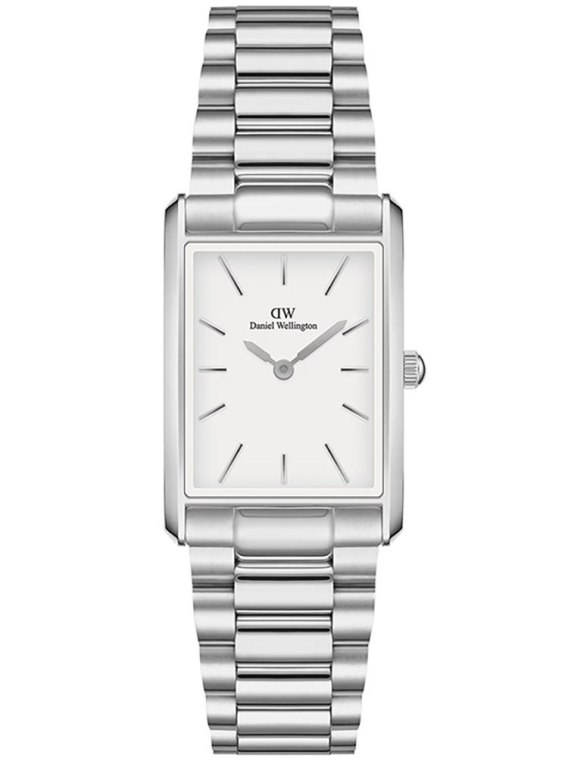 Daniel Wellington DW00100700 to stylowy damski zegarek, który wyróżnia się elegancką, prostokątną kopertą o delikatnie zaokrąglonych krawędziach oraz subtelną, trzyrzędową bransoletą, idealnie zintegrowaną z całością.