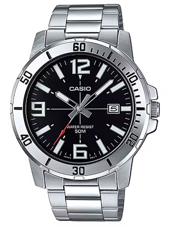 Zegarek męski CASIO MTP-VD01D-1BV to połączenie klasycznej elegancji i nowoczesnej funkcjonalności, które sprawia, że ten czasomierz doskonale sprawdzi się w każdej sytuacji. Ten model to idealny wybór dla mężczyzn, którzy cenią sobie ponadczasowy design i niezawodność w codziennym użytkowaniu. Srebrna, okrągła koperta ze stali szlachetnej nadaje zegarkowi wyrafinowanego charakteru, a jednocześnie zapewnia trwałość i odporność na uszkodzenia. Jej kształt i detale sprawiają, że zegarek doskonale komponuje się zarówno z eleganckimi garniturami, jak i bardziej casualowymi stylizacjami.