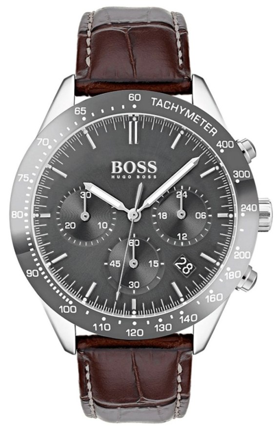 Zegarek męski Hugo Boss 1513598 z serii Talent to nietuzinkowy zegarek dla prawdziwych mężczyzn. Na szarej tarczy zabezpieczonej trwałym mineralnym szkłem i otoczonej pierścieniem znajdziemy datownik dnia miesiąca oraz subtarcze będące wskazaniami chronografu oraz czasu dobowego.