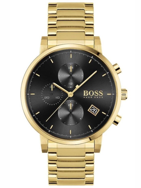 Zegarek męski Hugo Boss 1513780 Integrity to elegancki męski zegarek idealny zarówno do eleganckiego ubioru, jak i do noszenia na co dzień. Na czarnej tarczy zabezpieczonej mineralnym szkłem znajdziemy datownik dnia miesiąca oraz subtarcze będące wskazaniami chronografu i czasu dobowego.