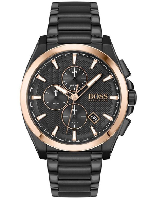 Zegarek męski Hugo Boss 1513885 Grandmaster to propozycja dla mężczyzn, którzy szukają funkcjonalnego i jednocześnie eleganckiego zegarka. Model tego zegarka posiada czarną bransoletę oraz kopertę - obie wykonane ze stali szlachetnej. Na czarnej mocno rozbudowanej tarczy zabezpieczonej mineralnym szkłem znajdziemy datownik wskazujący dzień miesiąca oraz subtarcze będące wskazaniami chronografu oraz czasu dobowego oraz stoper, który obsługuje się za pomocą bocznych przycisków. Wodoszczelność na poziomie 5ATM dzięki czemu z zegarkiem można się kąpać, ale nie wolno w nim pływać. Największy atut tego modelu to wielkość koperty, wspaniale prezentuje się na męski nadgarstku.
