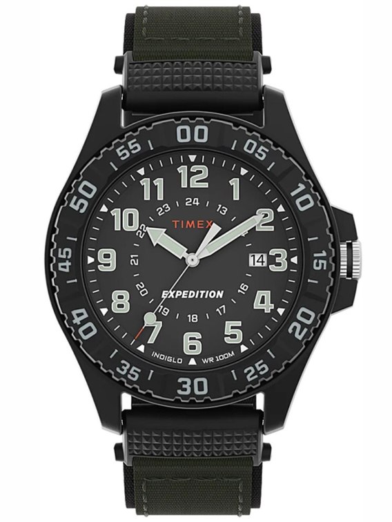 Męski zegarek TIMEX Expedition Acadia Rugged TW4B26400 pasuje idealnie do codziennych stylizacji, jak i na bardziej uroczyste okazje. Na czarnej i czytelnej tarczy umieszczono datownik. Model ten posiada czarno-zielony materiałowy pasek oraz czarną kopertę wykonaną z wysokiej jakości stali szlachetnej. Klasa wodoszczelności zegarka to WR100. Podświetlenie tarczy INDIGLO - Specjalny patent na podświetlenie tarczy. Po wciśnięciu koronki lub przycisku funkcyjnego tarcza zegarka zostanie podświetlona od spodu.