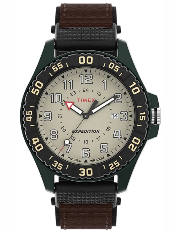Męski zegarek TIMEX Expedition Acadia Rugged TW4B26500 pasuje idealnie do codziennych stylizacji. Na beżowej i czytelnej tarczy umieszczono datownik. Model ten posiada brązowy materiałowy pasek oraz zieloną kopertę wykonaną z wysokiej jakości stali szlachetnej. Klasa wodoszczelności zegarka to WR100. Podświetlenie tarczy INDIGLO - Specjalny patent na podświetlenie tarczy. Po wciśnięciu koronki lub przycisku funkcyjnego tarcza zegarka zostanie podświetlona od spodu.