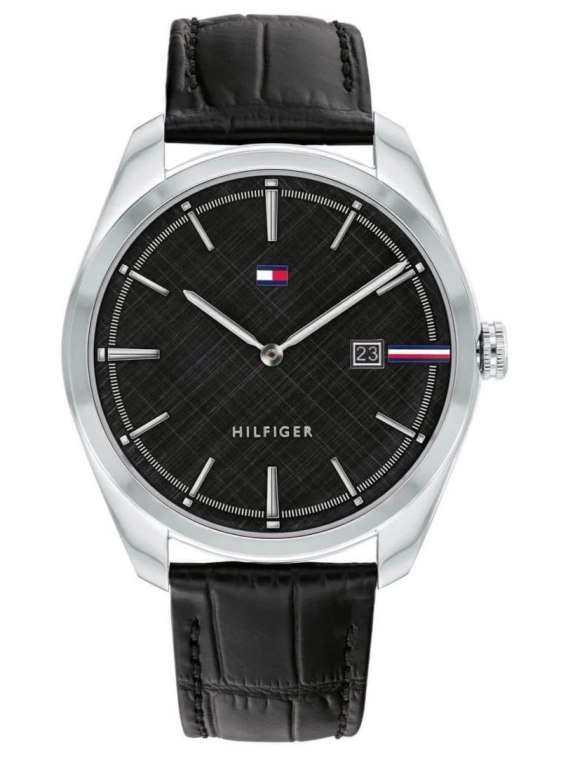 Zegarek męski TOMMY HILFIGER Theo 1710439 to nowoczesny i elegancki model do noszenia na co dzień. Koperta wykonana wysokiej klasy stali szlachetnej 316L, odpornej na korozję oraz hipoalergicznej. Na czarnej tarczy, ze szlifem słonecznym umieszczono datownik. Całość chroniona szkłem mineralnym. Model ten posiada czarny pasek wykonany ze skóry naturalnej. Za odmierzanie czasu w zegarku Tommy Hilfiger 1710439 odpowiada mechanizm kwarcowy, do którego energia go zasilająca pochodzi z baterii. Model 1710439 posiada wodoszczelność na poziomie 5ATM co czyni go w niewielkim stopniu odpornym za wodę. Całość dopracowano w najdrobniejszym szczególe oraz zaprojektowano w zgodzie z aktualnymi trendami w modzie, otrzymując klasyczny, ale jakże elegancki zegarek.