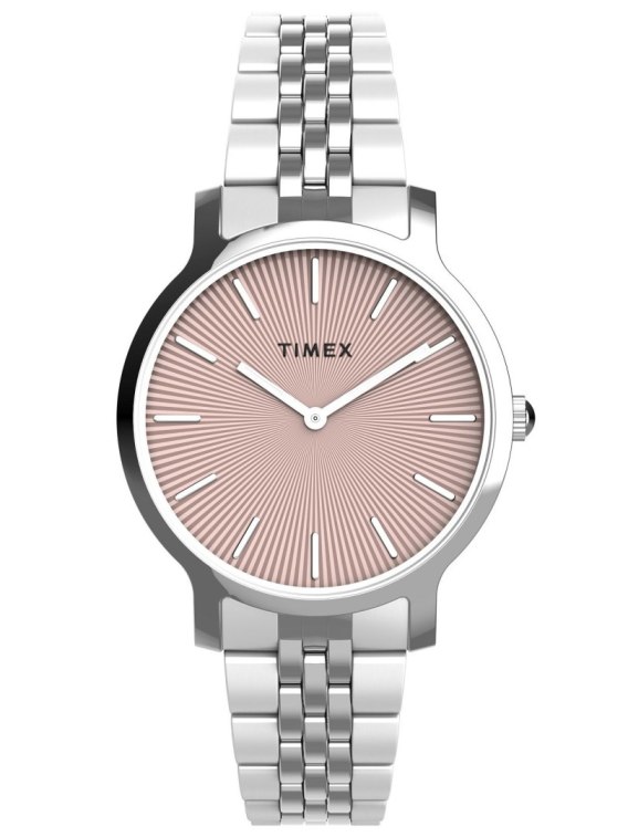 Zegarek damski Timex Transcend TW2V77400 to propozycja doskonałego zegarka na każdą okazję. Różową tarczę chroni odporne szkiełko mineralne, a mechanizm kwarcowy ukryty jest w kopercie wykonanej ze stali szlachetnej. Bransoleta wykonana ze stali szlachetnej.Wodoszczelność tego modelu została ustanowiona na poziomie 30 metrów.