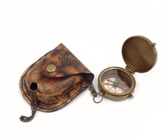 Zamykany kompas z łańcuszkiem w skórzanym etui C-64