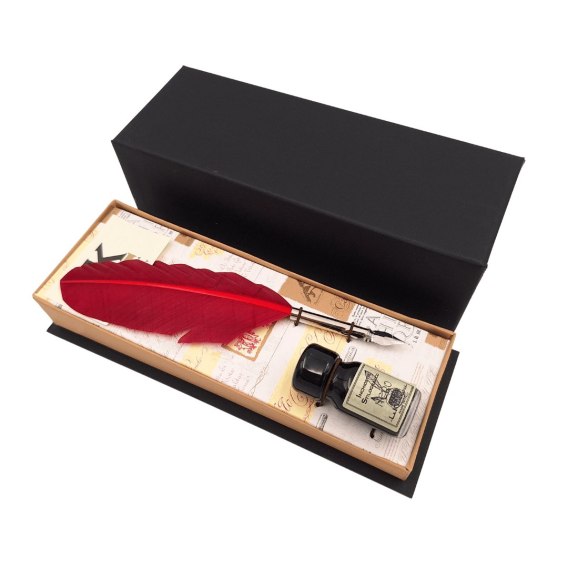 Zestaw do kaligrafii - bordowe pióro gęsie ze stalówką + tusz - 2226