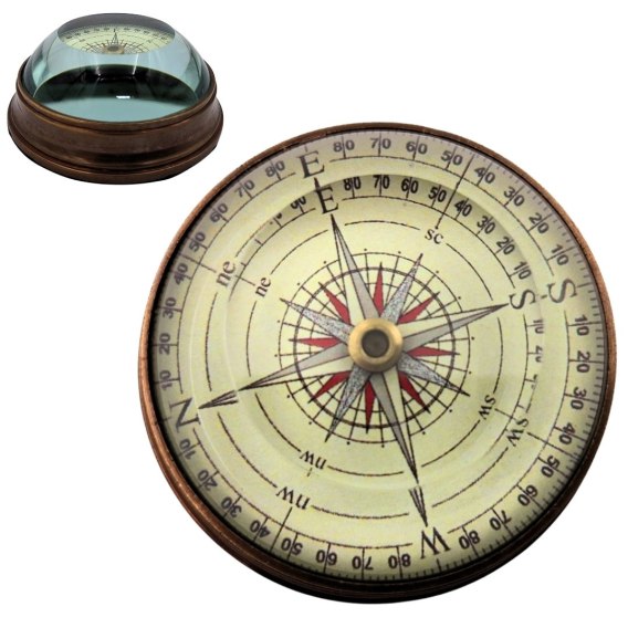 Kompas Soczewkowy - Mosiądz i Szkło - Retro gadżet na biurko - NC2119